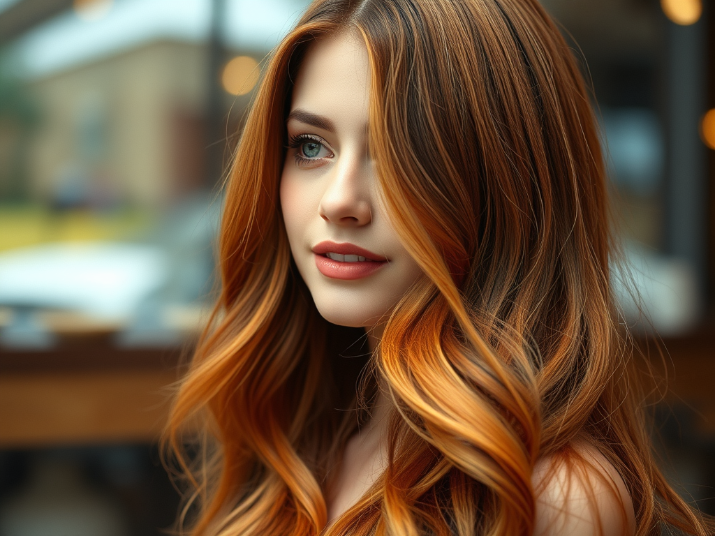 copper tone balayage with darker background