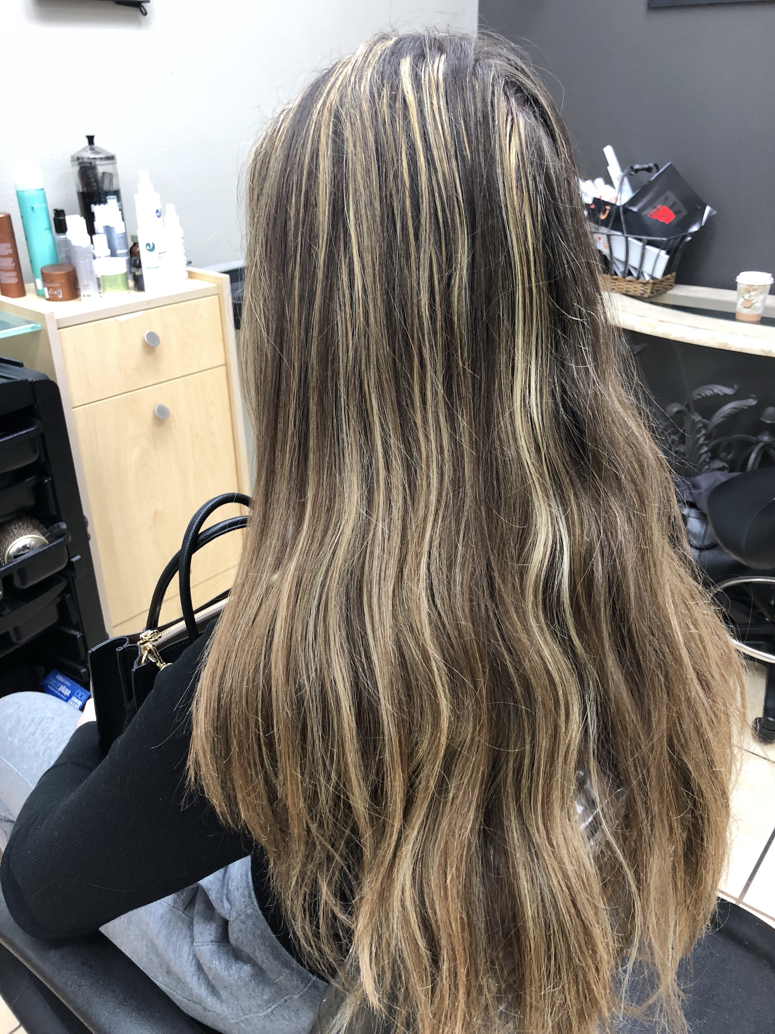 Photos of hair that has been highlighted with foils not blended this client is young and wanted her hair done in Balayage color , here are the results after spending over three ours blending these creamy golden tones , hair color by MartinRodriguez.com